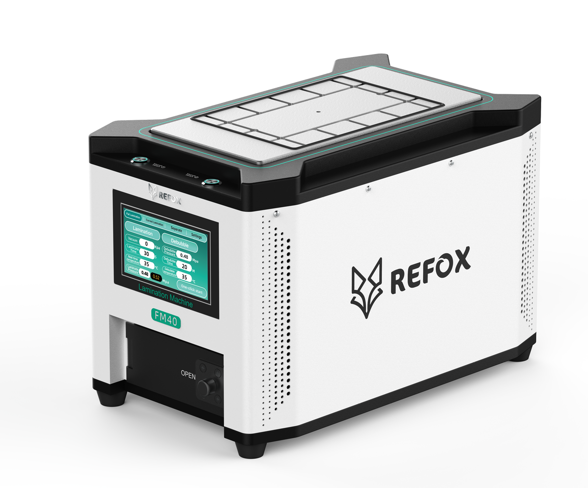 The REFOX FM40 Laminating Machine is a versatile desktop device that integrates separation, lamination, and bubble removal into one compact unit. Ideal for mobile phone and tablet screen repair, it’s commonly used for front glass replacement, OCA bonding, and bubble removal. The FM40 features automatic vacuuming without requiring an external air compressor or vacuum pump, making it easy to operate in any repair environment.