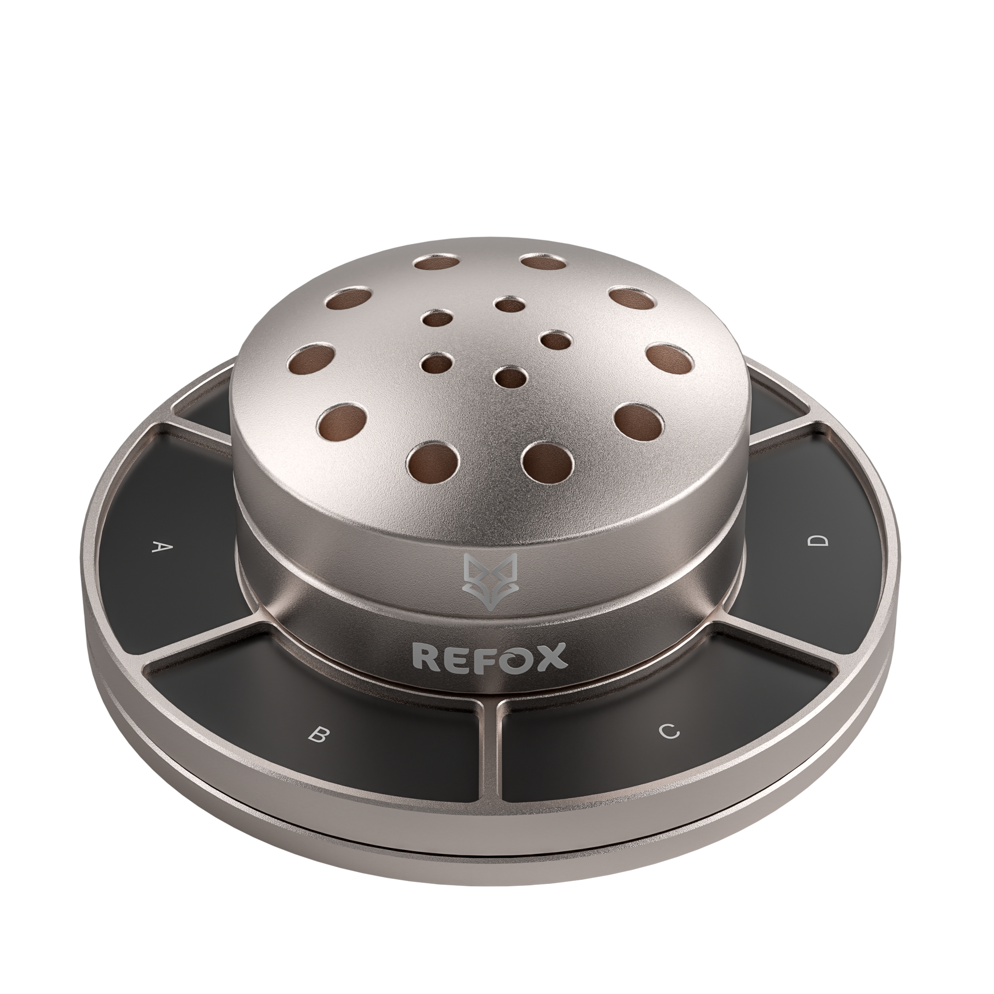 The REFOX RS40 Magnetic Screwdriver Holder is crafted from sturdy and durable aluminum alloy, highly resistant to wear and corrosion, ensuring long-lasting service life. Equipped with high-quality bearings and a 360° rotatable turntable, stocking and accessing repair tools becomes smooth and easy. A magnetic ring beneath the holder base allows magnetizing screwdriver bits after inserting them into holes. The holder features 15 large-capacity holes for storing screws, screwdrivers, drill bits, tweezers, pry bars, and other items.