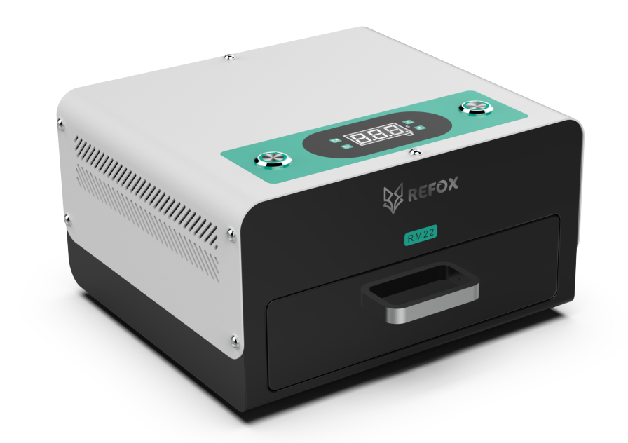 REFOX RM22 Mini UV Glue Curing Machine is a compact, efficient UV curing solution designed for solidifying waterproof glue and enhancing OCA adhesion during phone screen refurbishment. This environmentally friendly machine features a built-in ventilation and filtration system, ensuring a healthier workspace. Its high-performance LED lights emit ultraviolet rays that rapidly cure UV glue on waterproof molds, delivering quick and reliable sealing results.